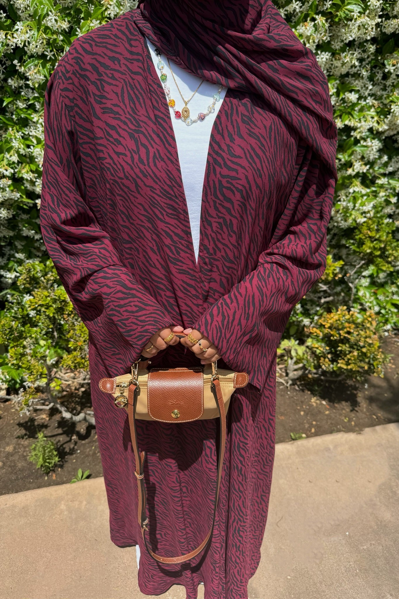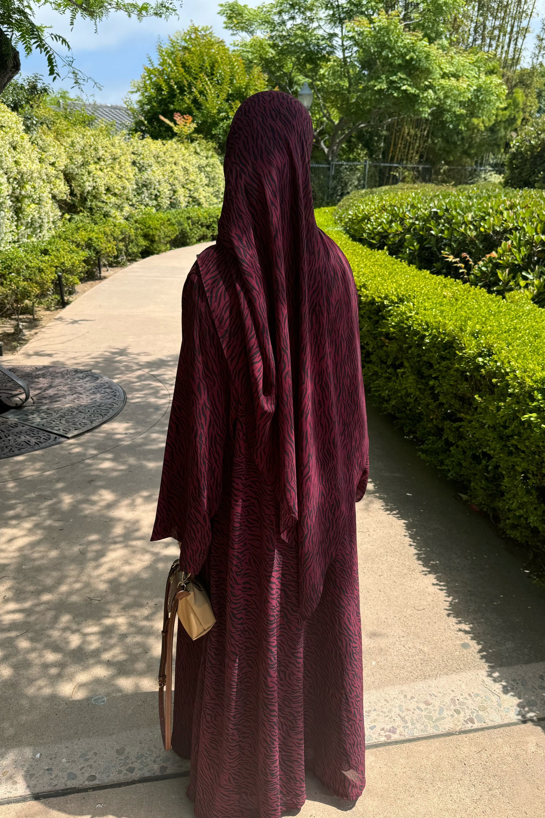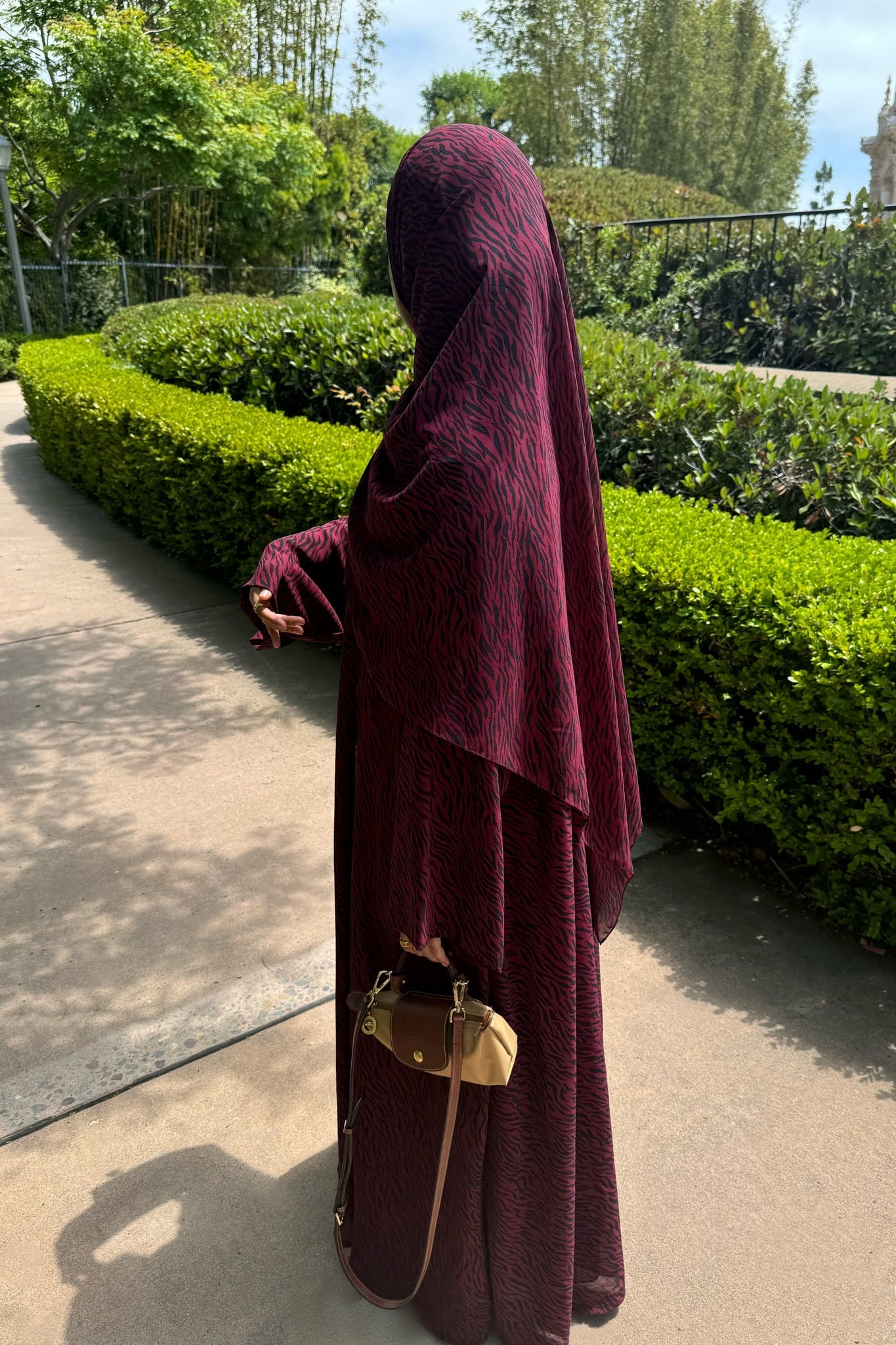 This printed abaya features a soft floral design and a loose, comfortable fit. Made from lightweight chiffon with a chiffon lining to maintain its flow, it comes with a matching hijab in the same printed fabric.