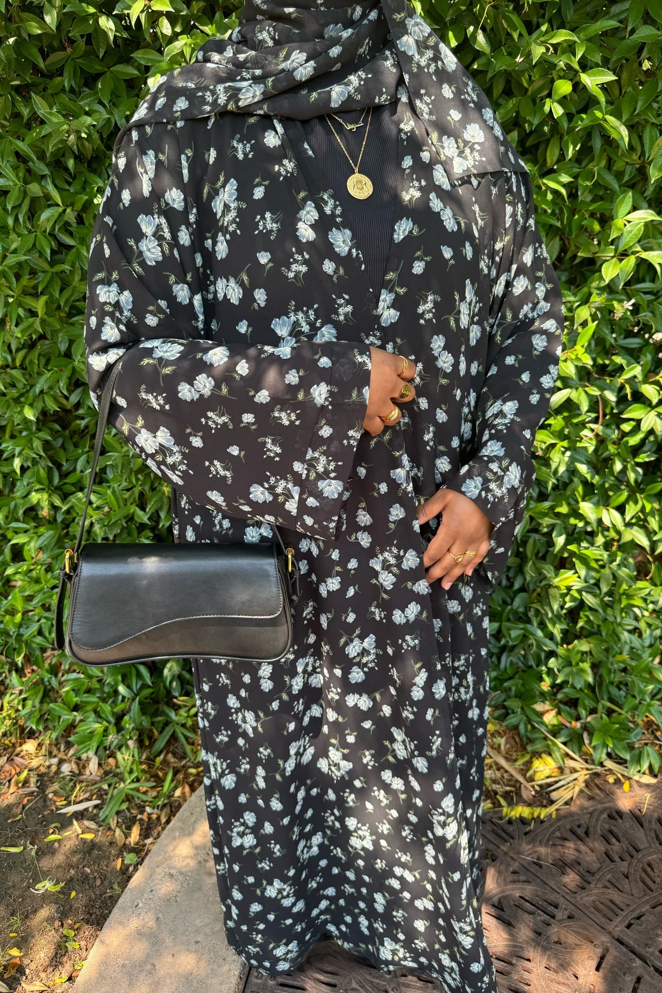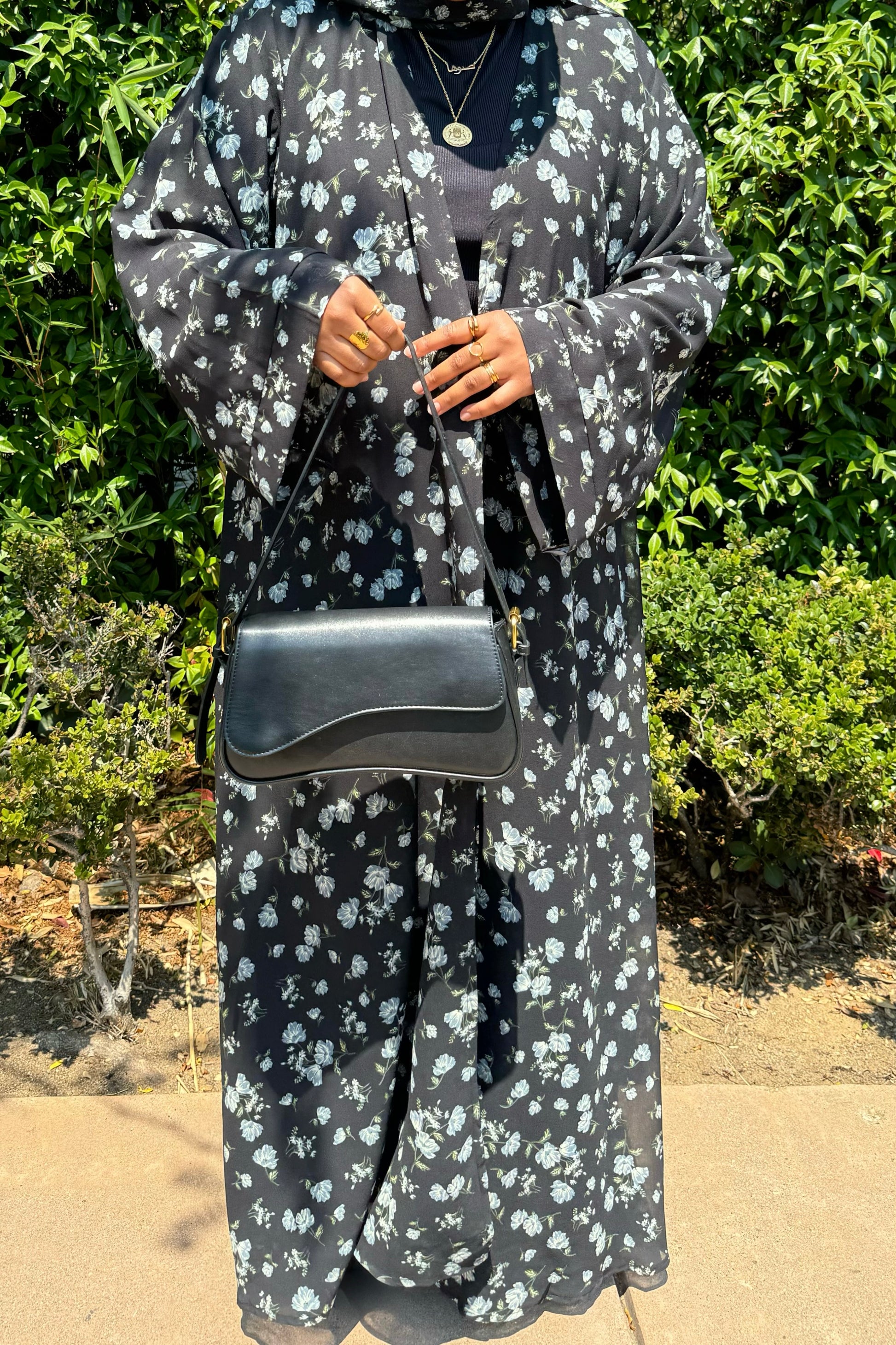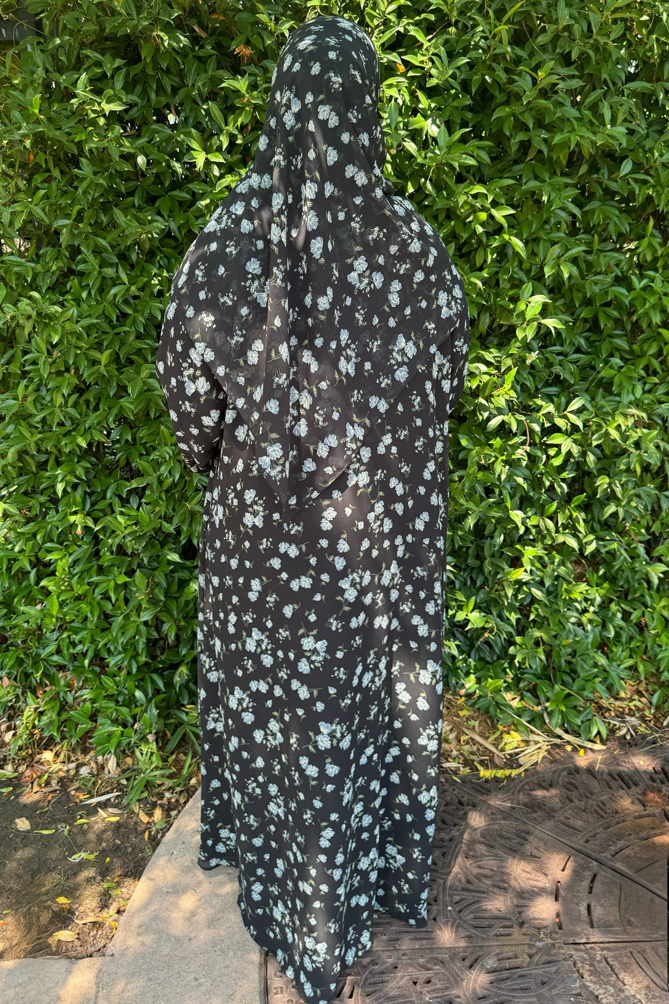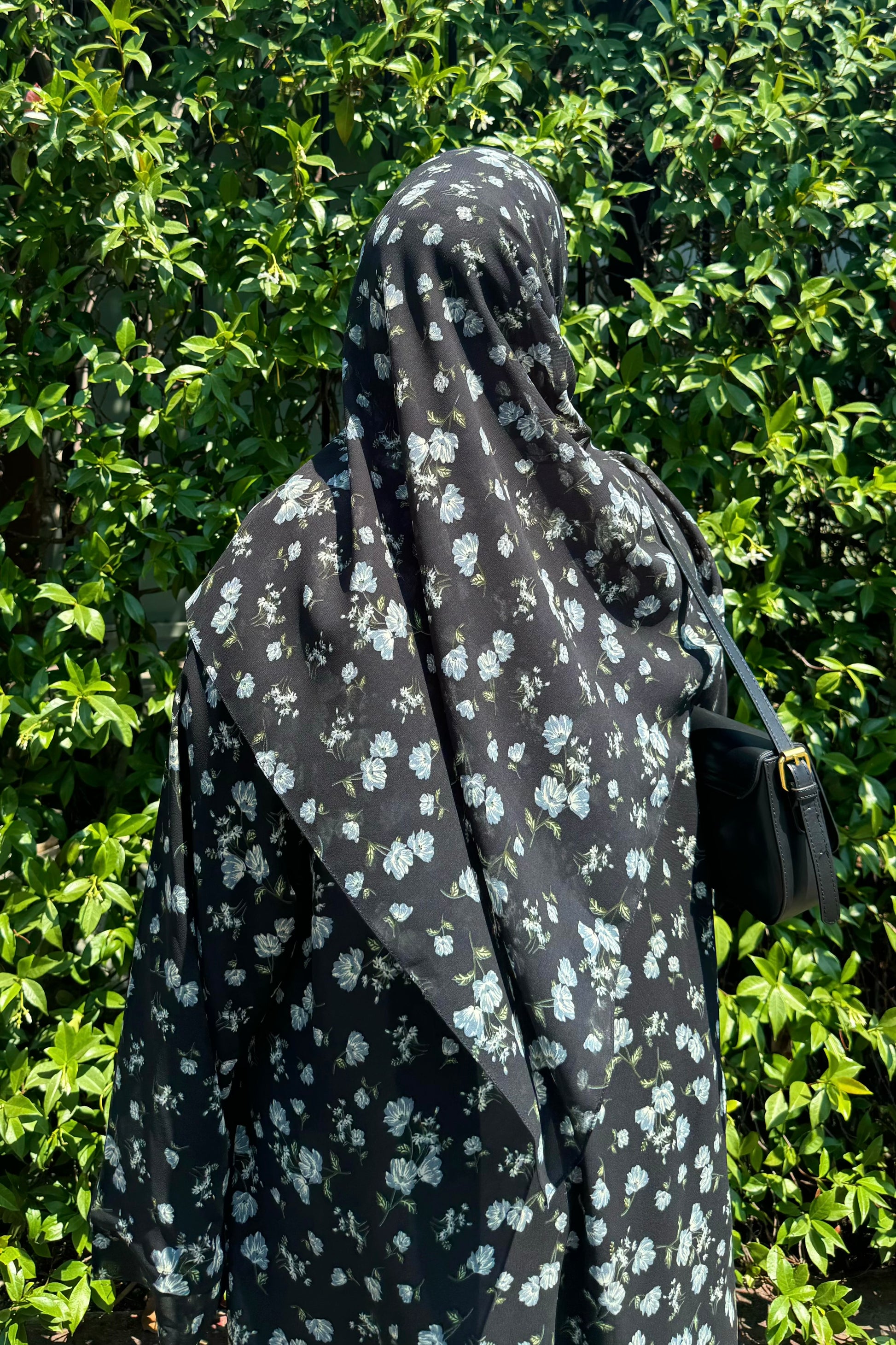 This printed abaya features a floral design and a loose, comfortable fit. Made from lightweight chiffon with a chiffon lining to maintain its flow, it comes with a matching hijab in the same printed fabric.