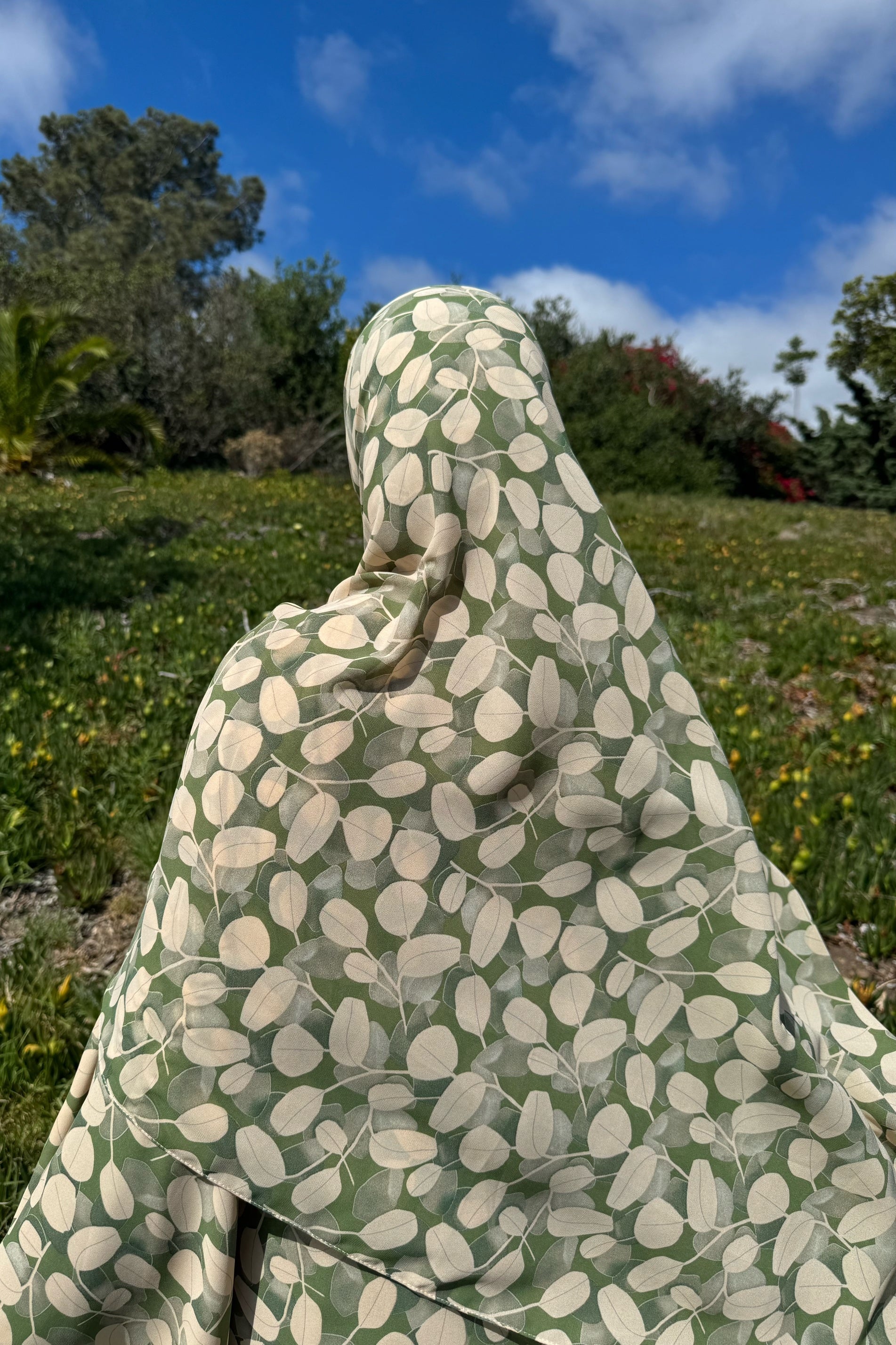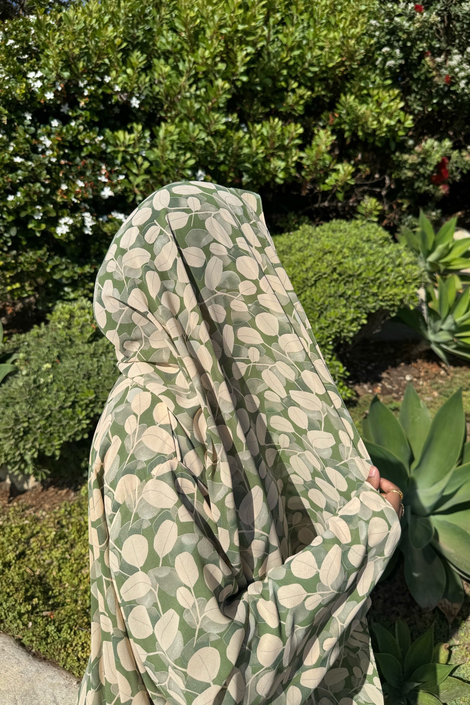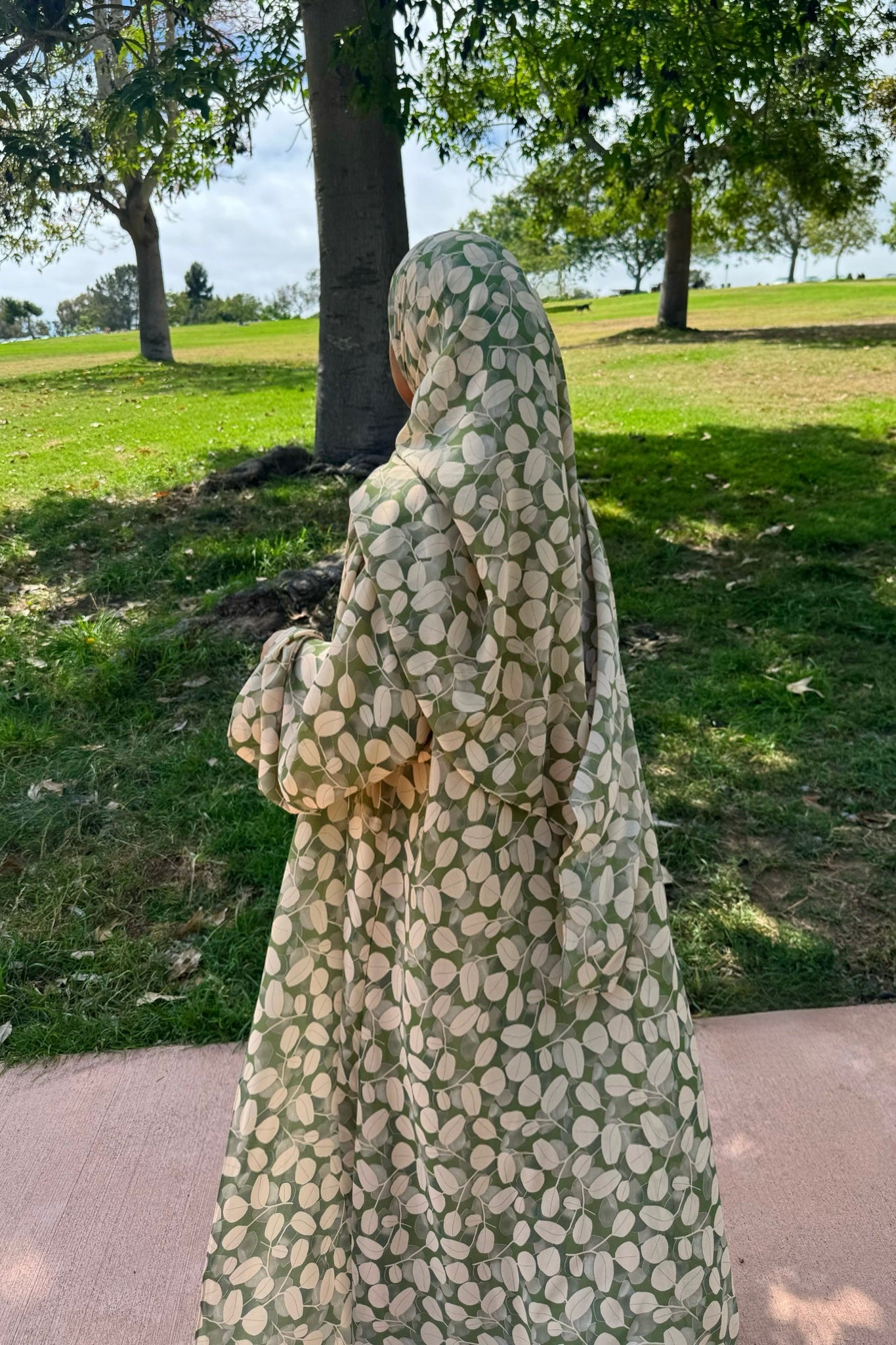 This printed abaya features a floral design and a loose, comfortable fit. Made from lightweight chiffon with a chiffon lining to maintain its flow, it comes with a matching hijab in the same printed fabric.