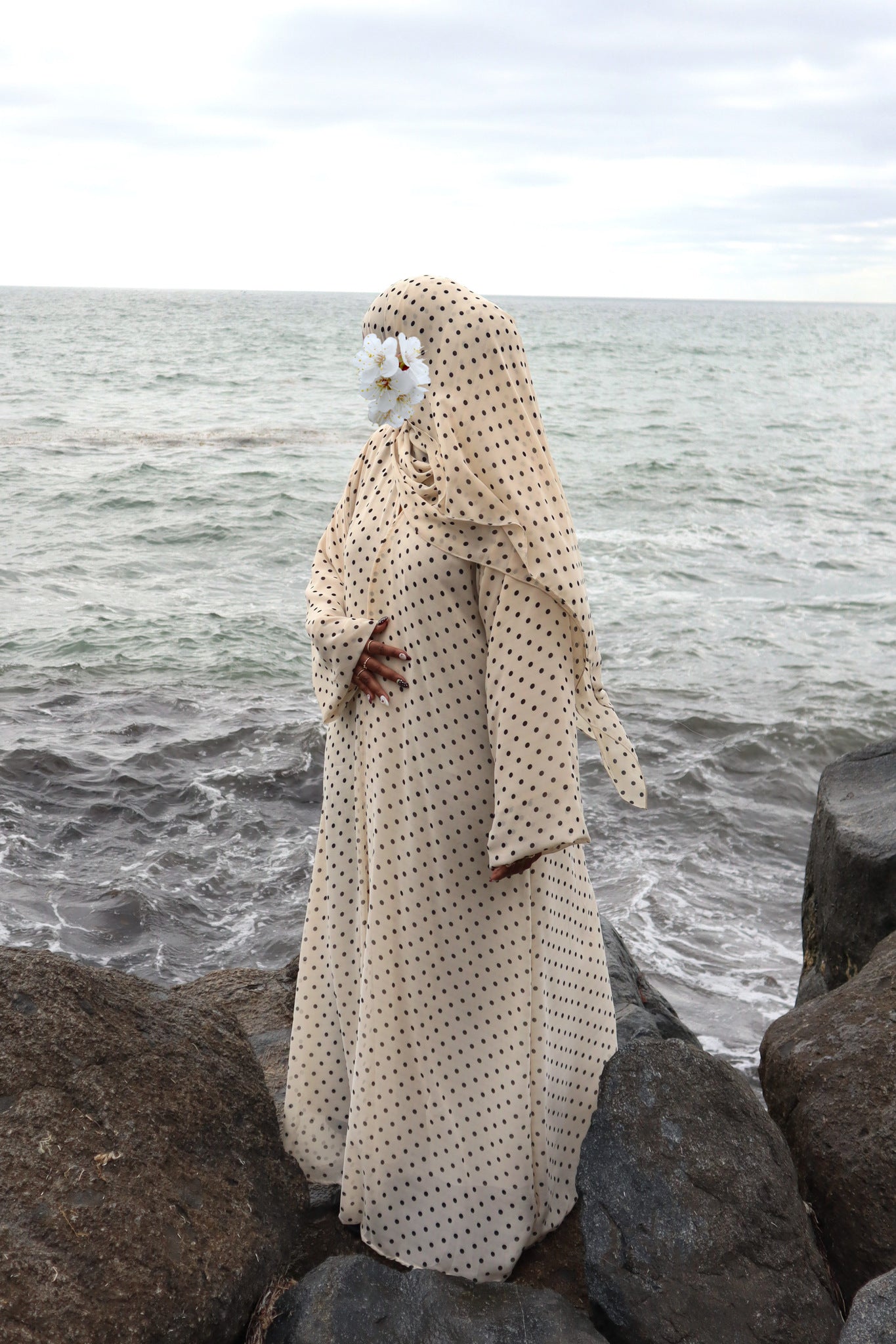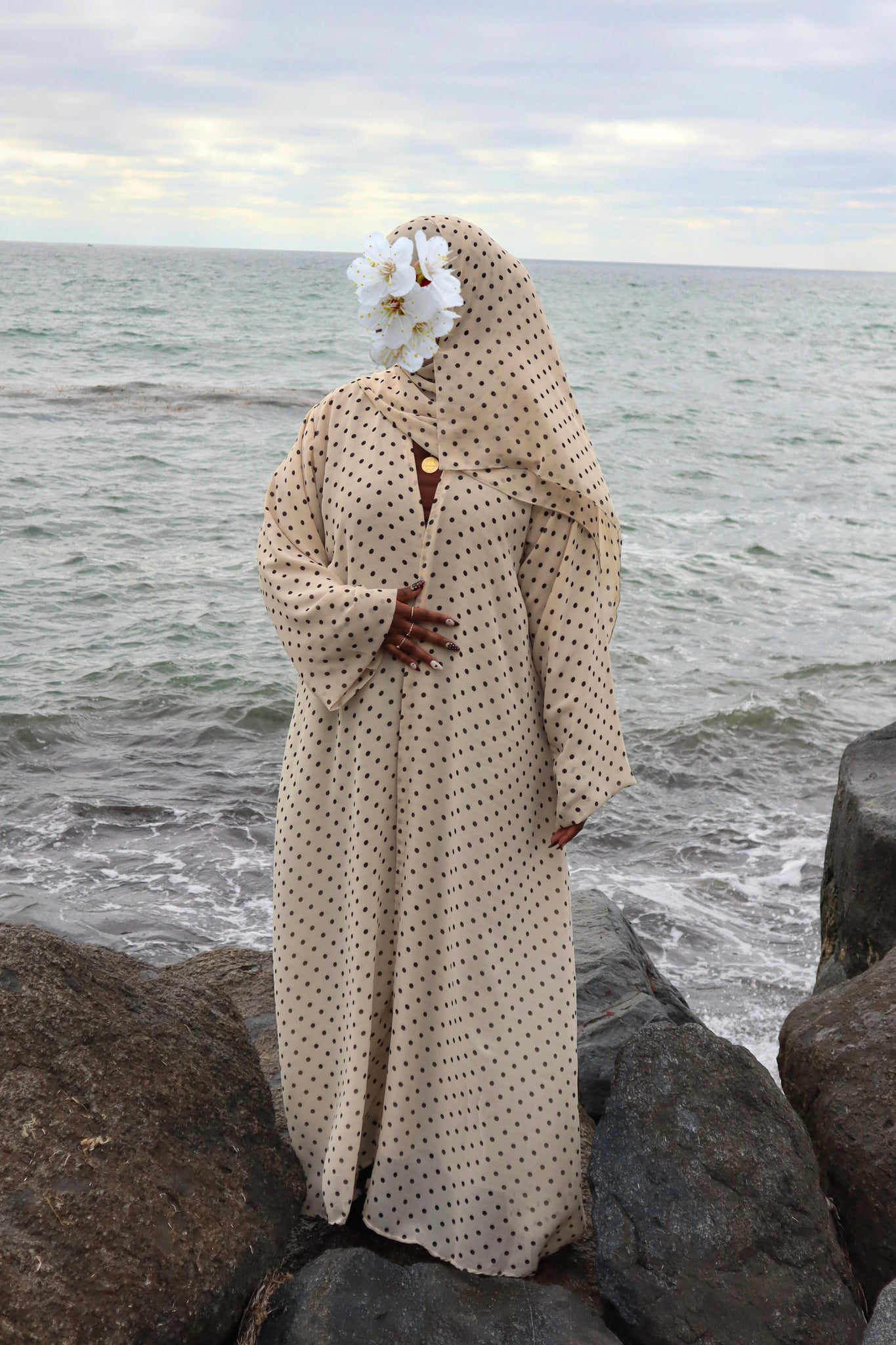 This printed abaya features a floral design and a loose, comfortable fit. Made from lightweight chiffon with a chiffon lining to maintain its flow, it comes with a matching hijab in the same printed fabric.