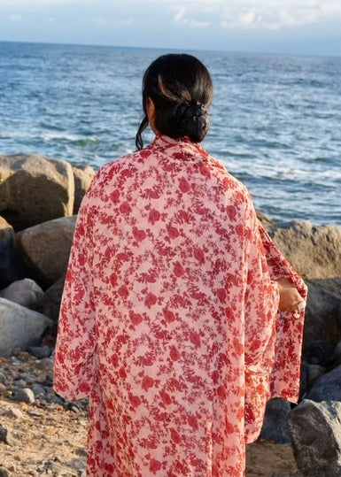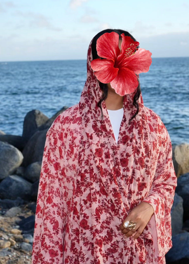 This printed abaya features a floral design and a loose, comfortable fit. Made from lightweight chiffon with a chiffon lining to maintain its flow, it comes with a matching hijab in the same printed fabric.